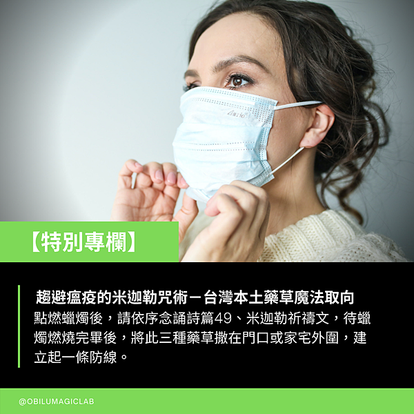 那身為魔法工作者的我可以做些什麼呢?而在這個敏感時機點,我不想賺取所謂的災難財,為此,今早的記者會結束後,便趕緊編寫了這次的「趨避瘟疫的米迦勒咒術-台灣本土藥草魔法取向」,給對魔法有基礎知識的您,可以進行此項儀式。