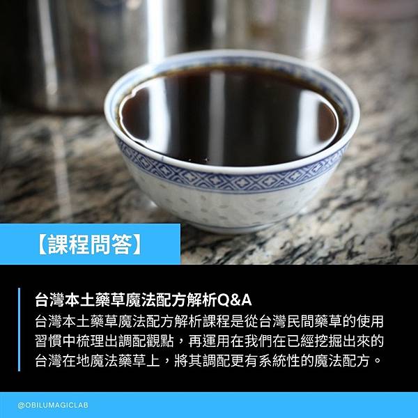台灣本土藥草魔法配方解析課程則是更進一步,從台灣民間藥草的使用習慣梳理出在地魔法配方調配觀點,並將這個調配觀點運用在台灣本土藥草魔法課程已經挖掘出來的台灣在地魔法藥草上,將其調配更有系統性的魔法配方。